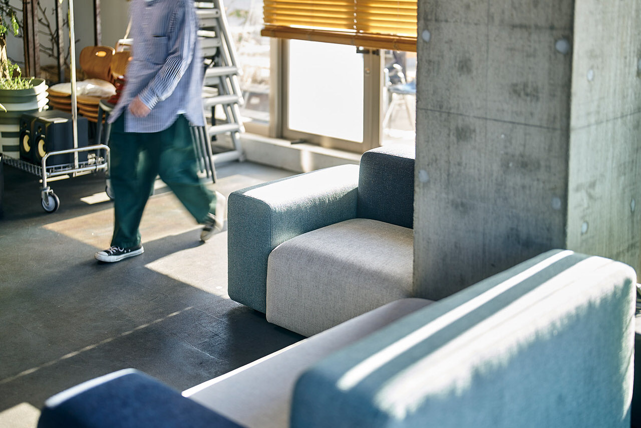 自在に組み合わせられるユニットタイプのソファなので、座り心地だけでなく、耐久性や汚れた時のメンテナンスのしやすさにも配慮しています。