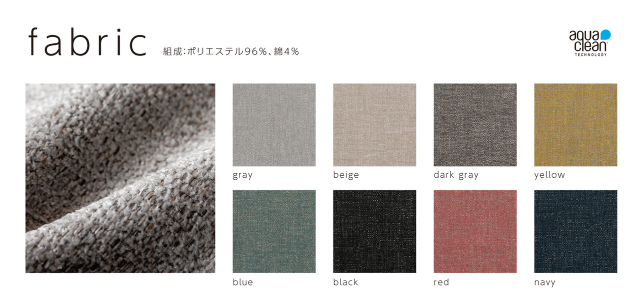 『アクアクリーン®テクノロジー』という、水だけで汚れを落とすことができる生地の加工技術を採用しており、汚れが繊維に浸透するのを目に見えない分子皮膜により防ぎます。