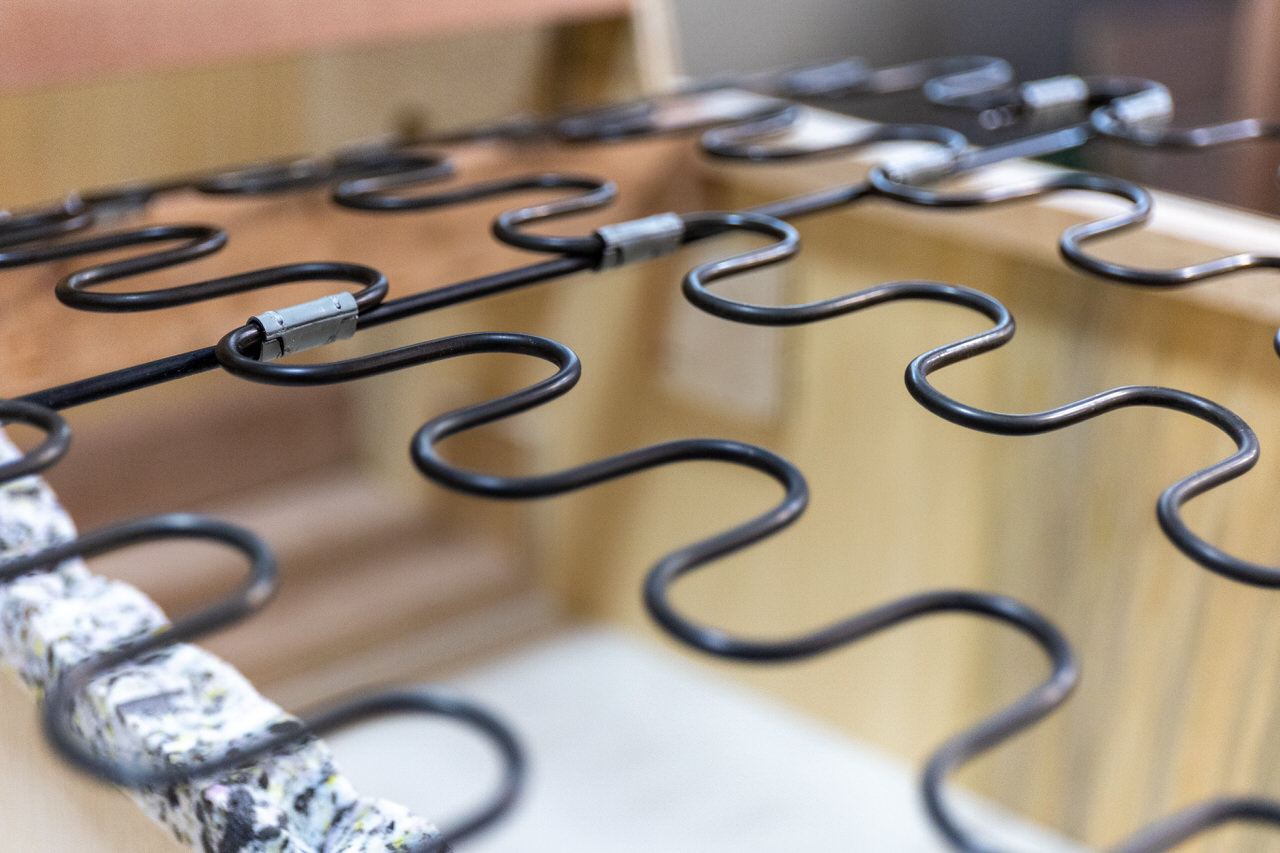 Sバネは、S字状のバネを波状に加工したコイル状のクッション材です。