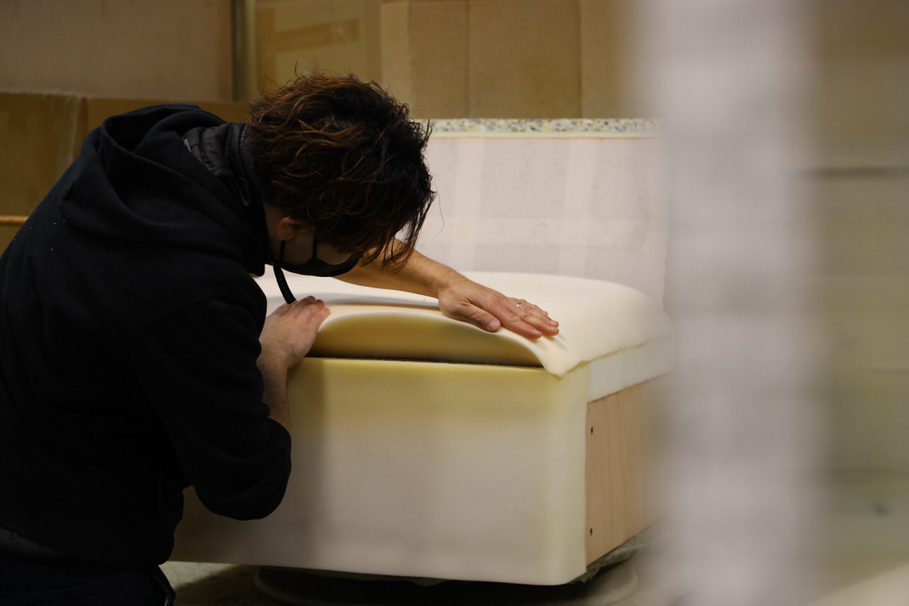 ウレタンとは伸縮性に優れた、強度の高いクッション材で、コロンソファは様々なタイプや密度のウレタンを組み合わせて、程よくしっとりとした座り心地に仕上げています。