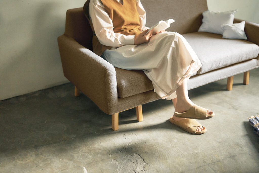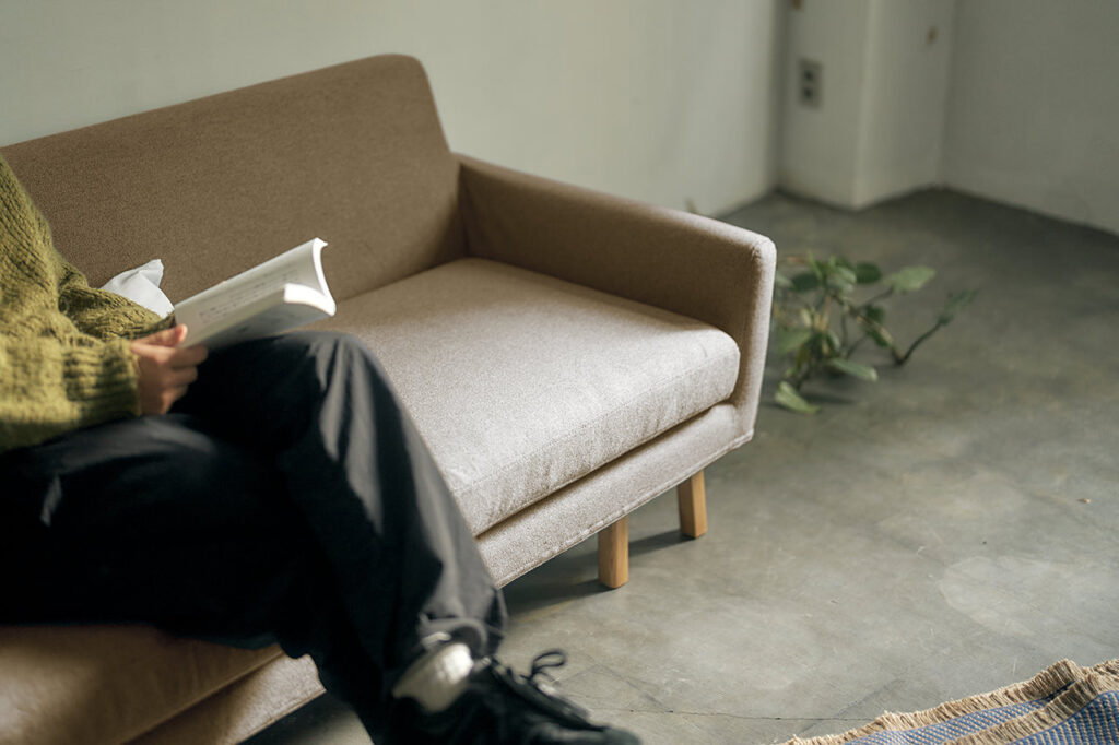 奥行きが深いので、座面に足をあげてくつろいだりもしやすいソファです。