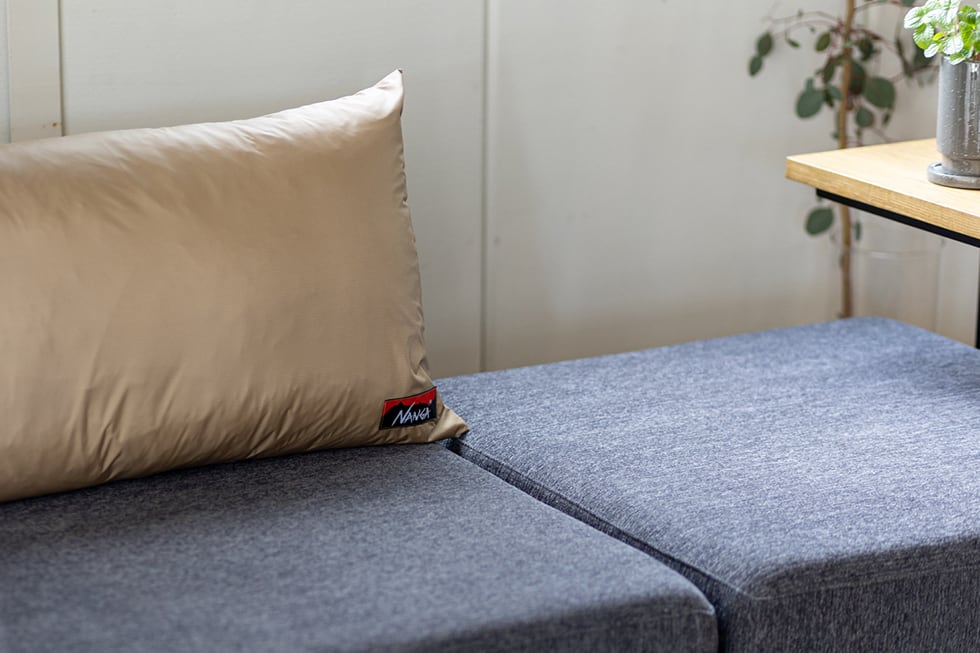 クッションカバーのファブリックは、NANGA製品でも多数採用されている高性能生地“AURORA -TEX®︎(オーロラテックス)”を採用しています。